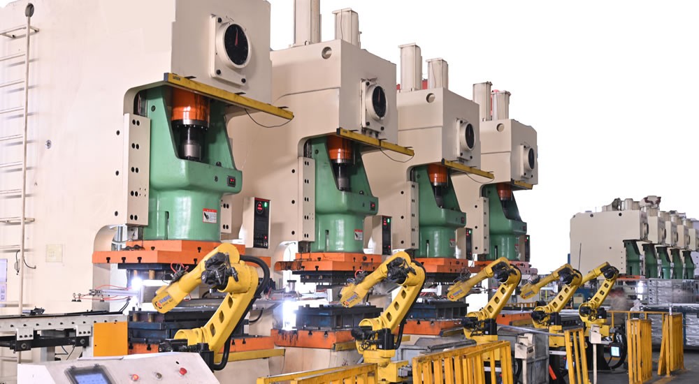 2010年12月合肥高科鈑金事業(yè)部成立,占地面積達16320平方米,目前擁有45-1000T大小沖床設(shè)備68臺,其中初期投入連續(xù)模自動生產(chǎn)線12條,后期投入機型手式全自動生產(chǎn)線3條,