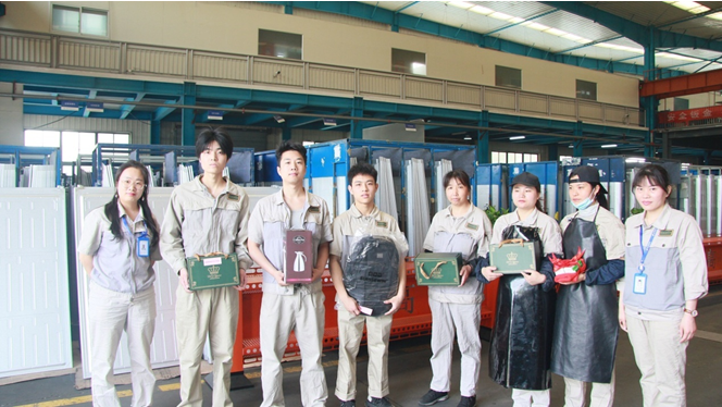 你為企業付出,我代企業送祝福,這是對每一位高科人的關心。蝴蝶翩翩盡歡顏,花開朵朵倉廩碩。一推車的禮物,帶著祝福,笑盈盈的走進了每個車間。